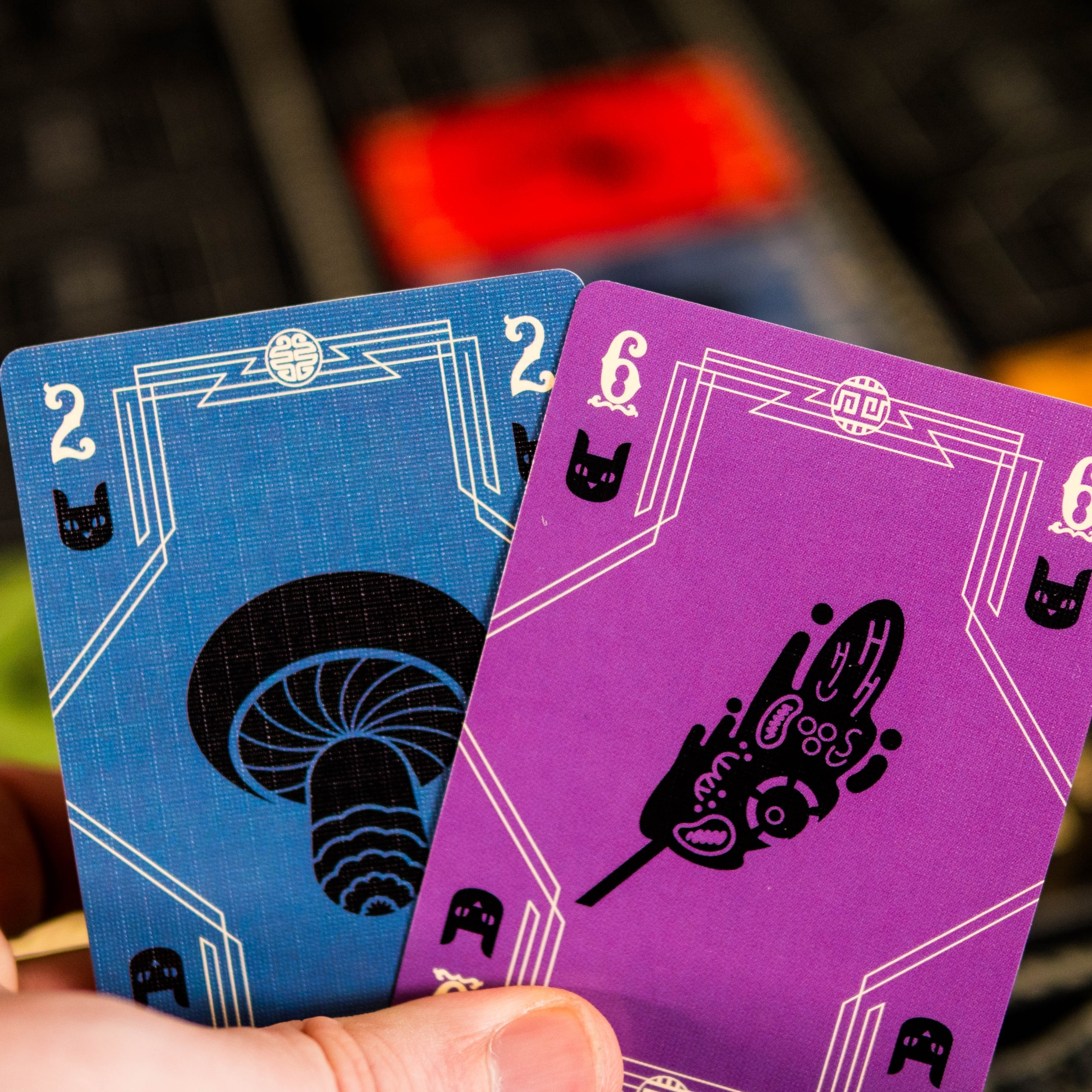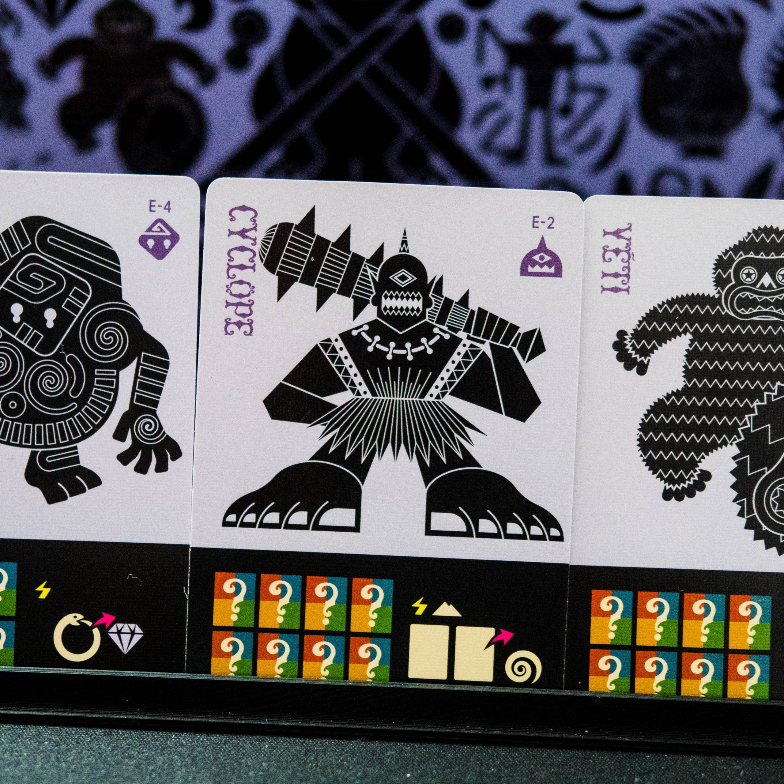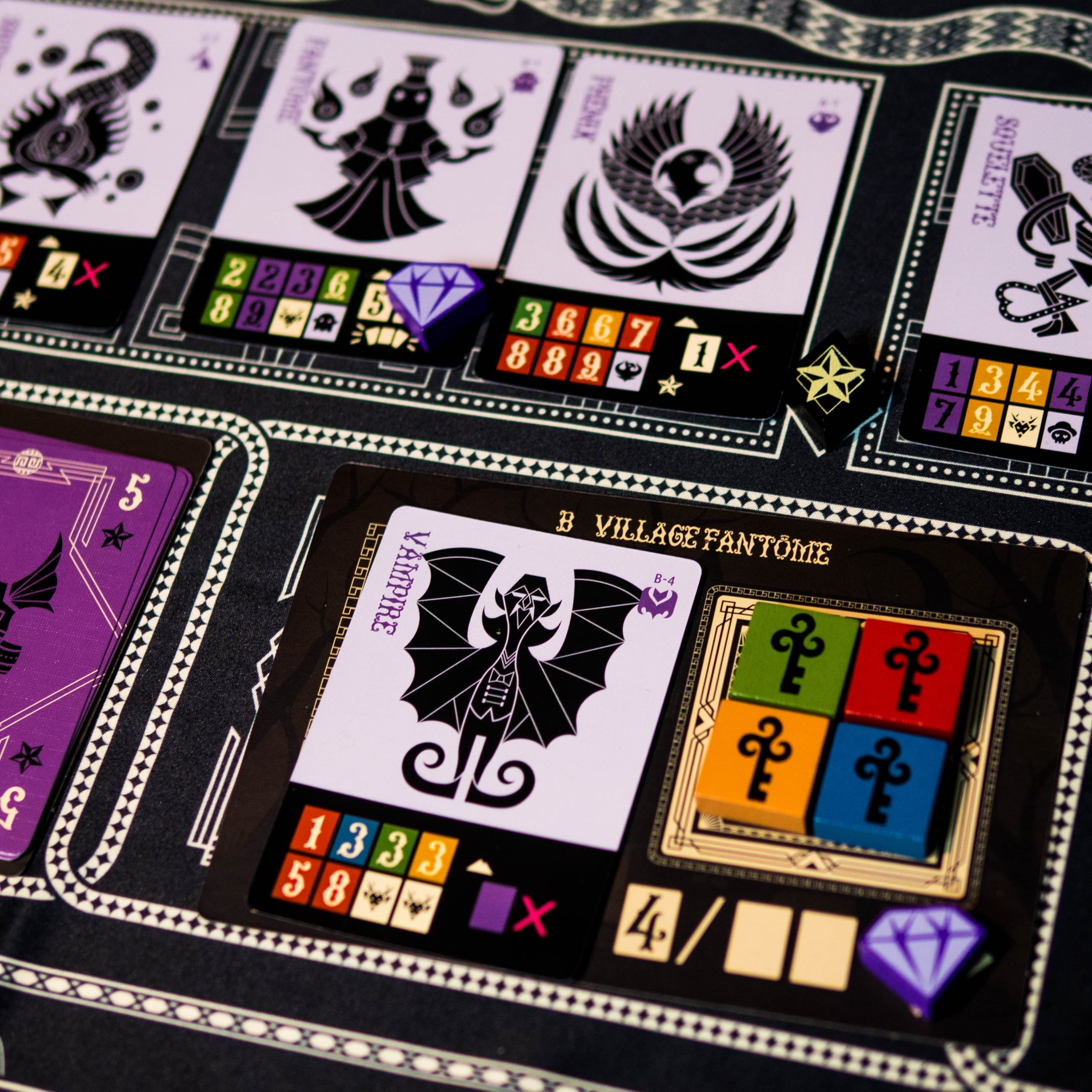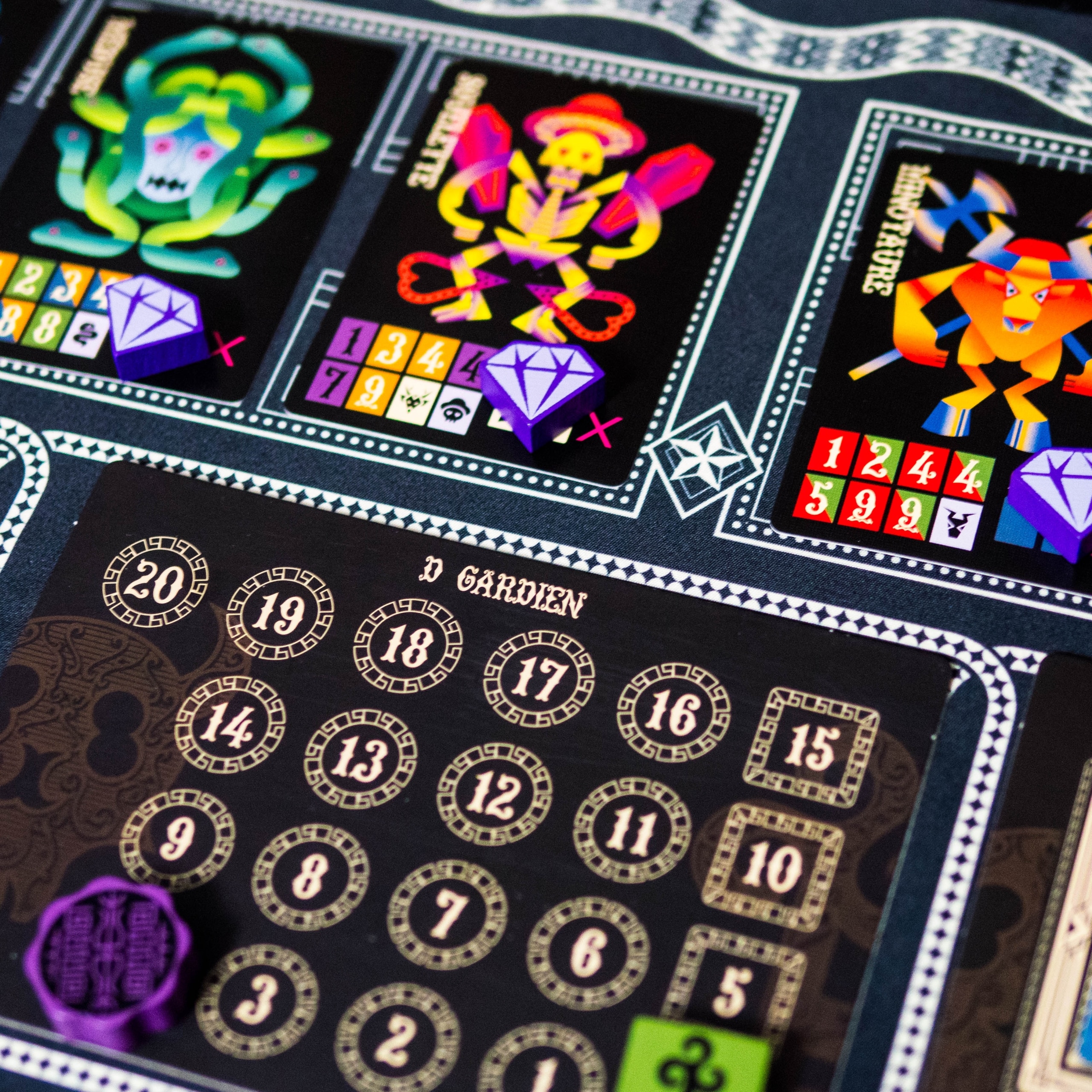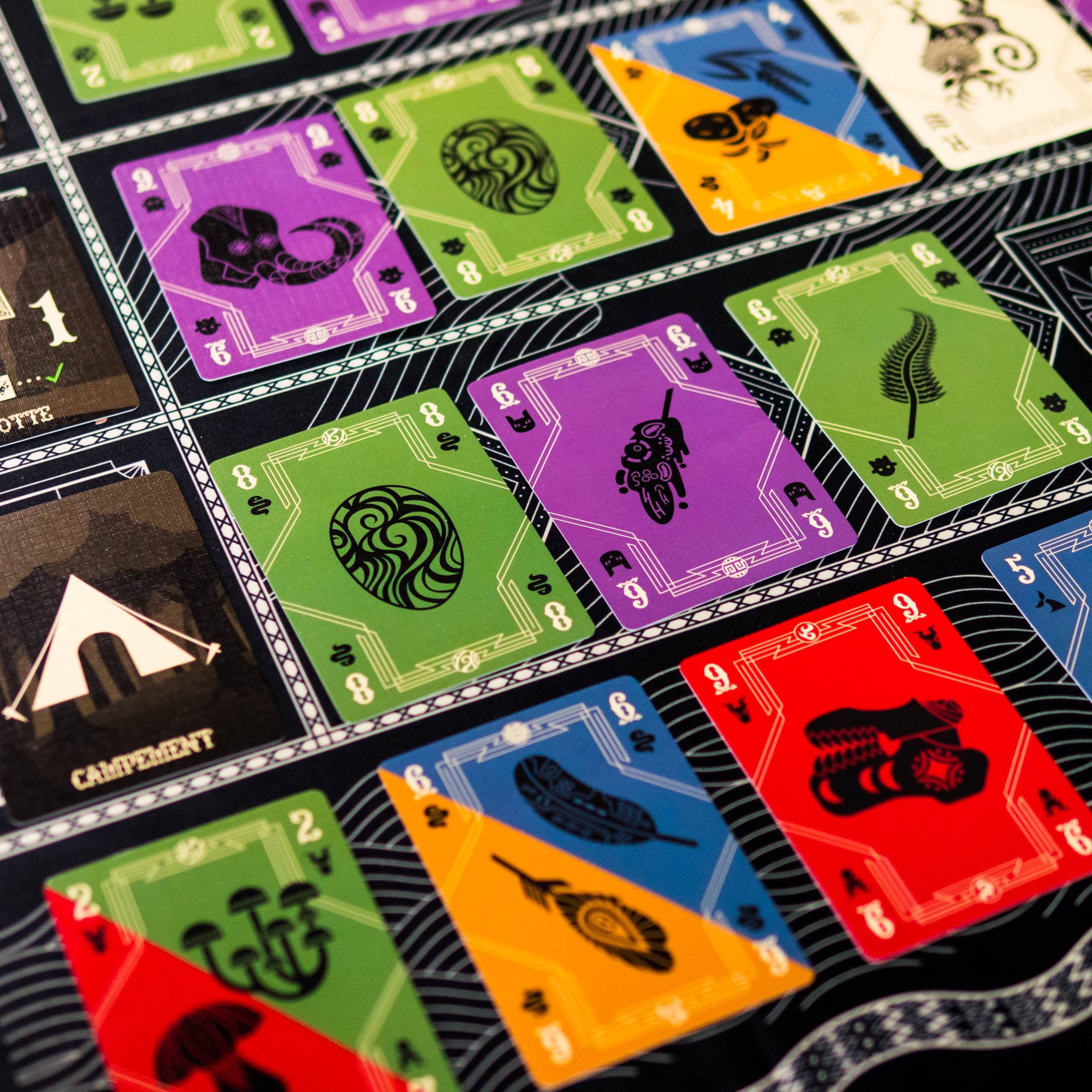 To lift a curse, players must generate a Jewel using cards from their hand according to specific recipes (cards of the same value, same colors, trio 1/5/9, etc.).