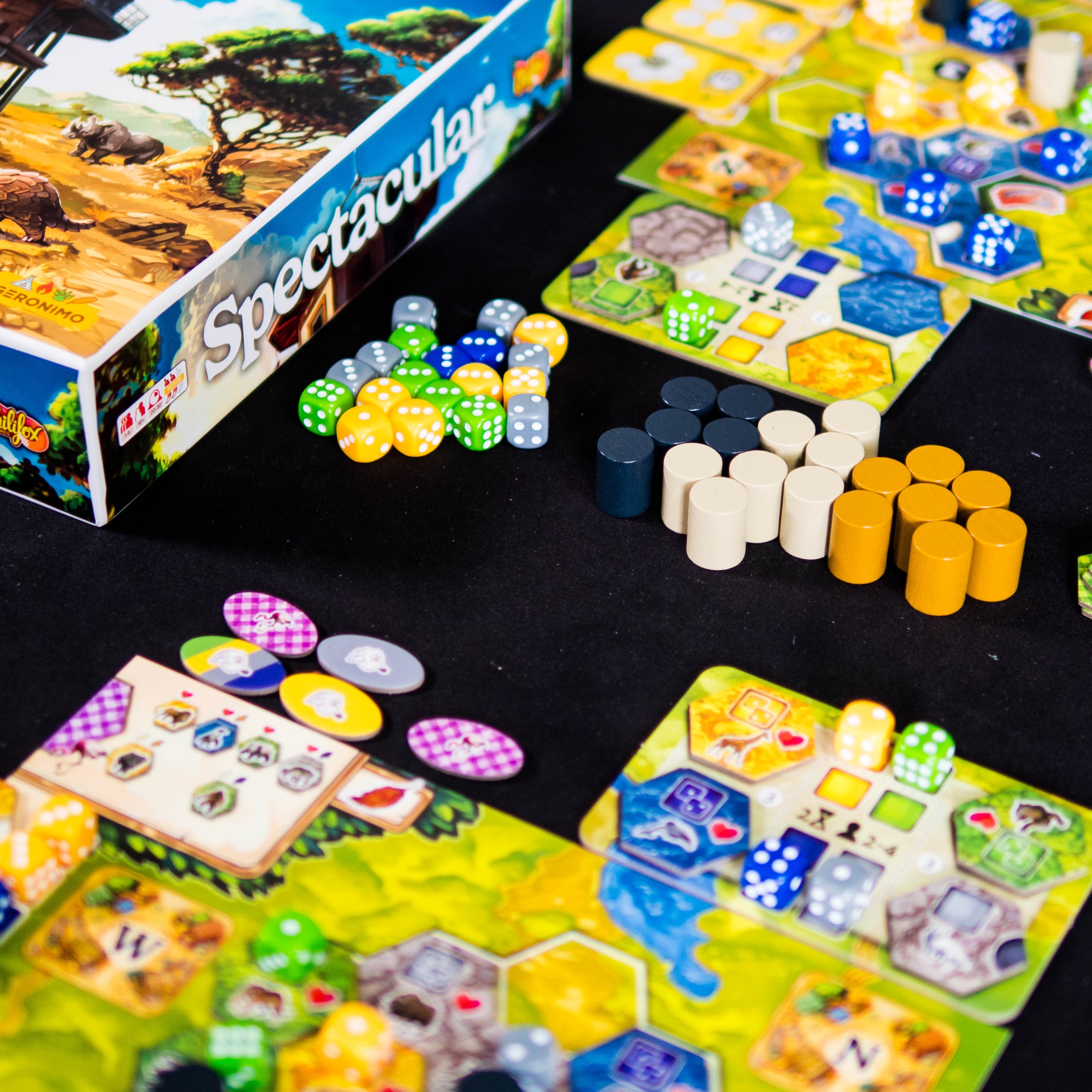 Spectacular is a management game combining dice, tiles, and drafting, offering a rich and tense strategic puzzle every turn. Despite its cumbersome setup and sometimes confusing scoring, it will appeal to fans of optimization and planning games.