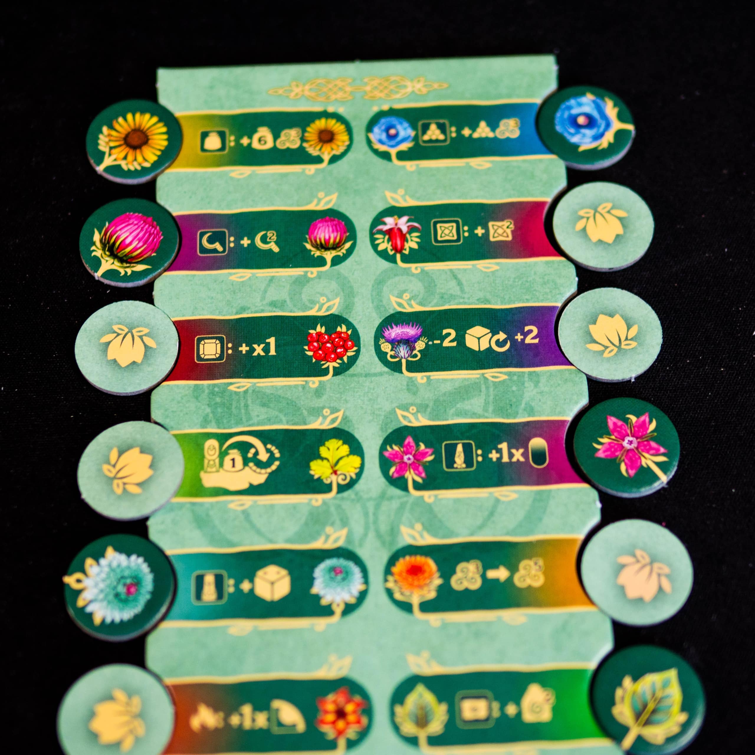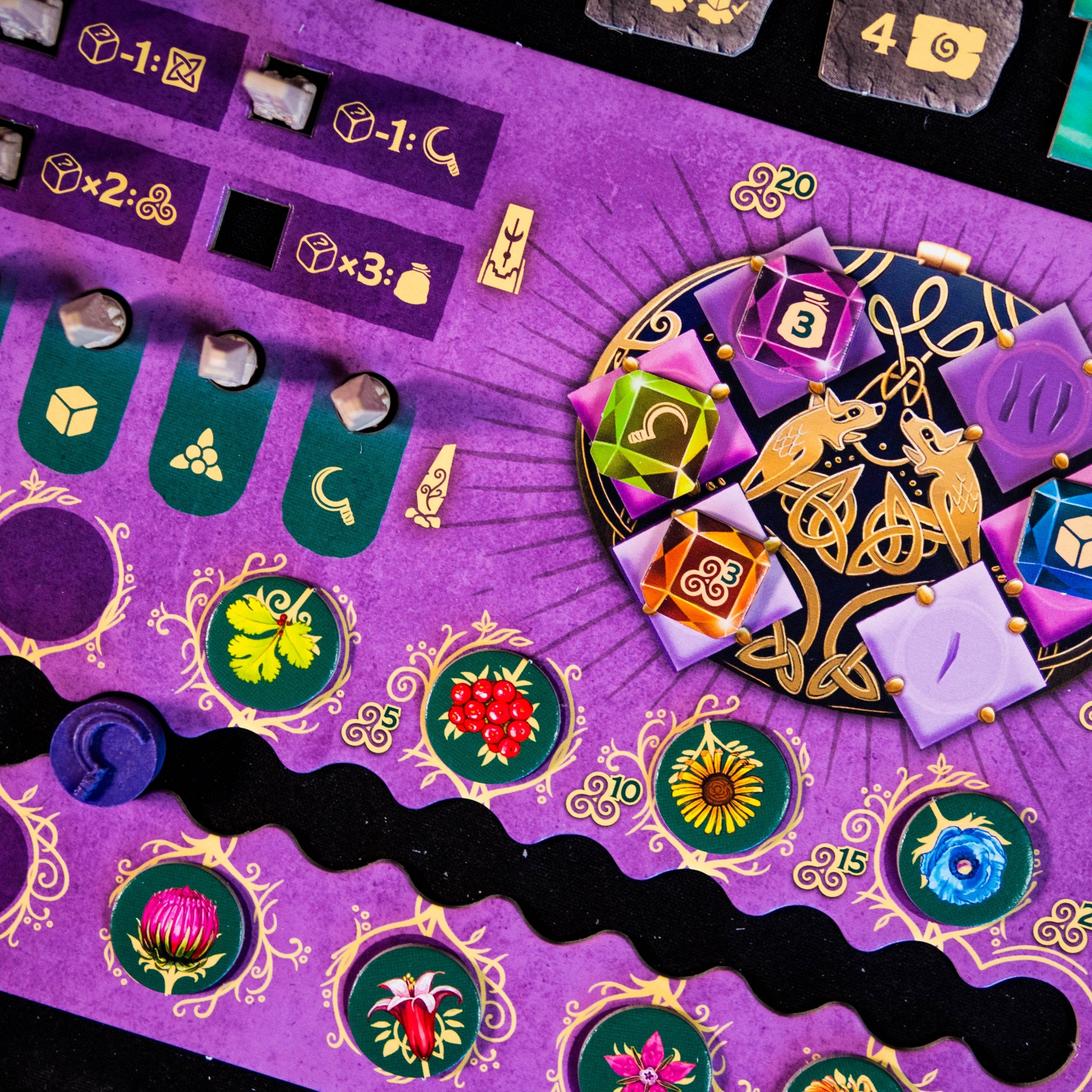 Finally, the medicinal plants unlocked using the sickle are activated. They offer permanent powers (modifiable dice, improved actions, multipliers, etc.), essential for optimizing your gameplay.