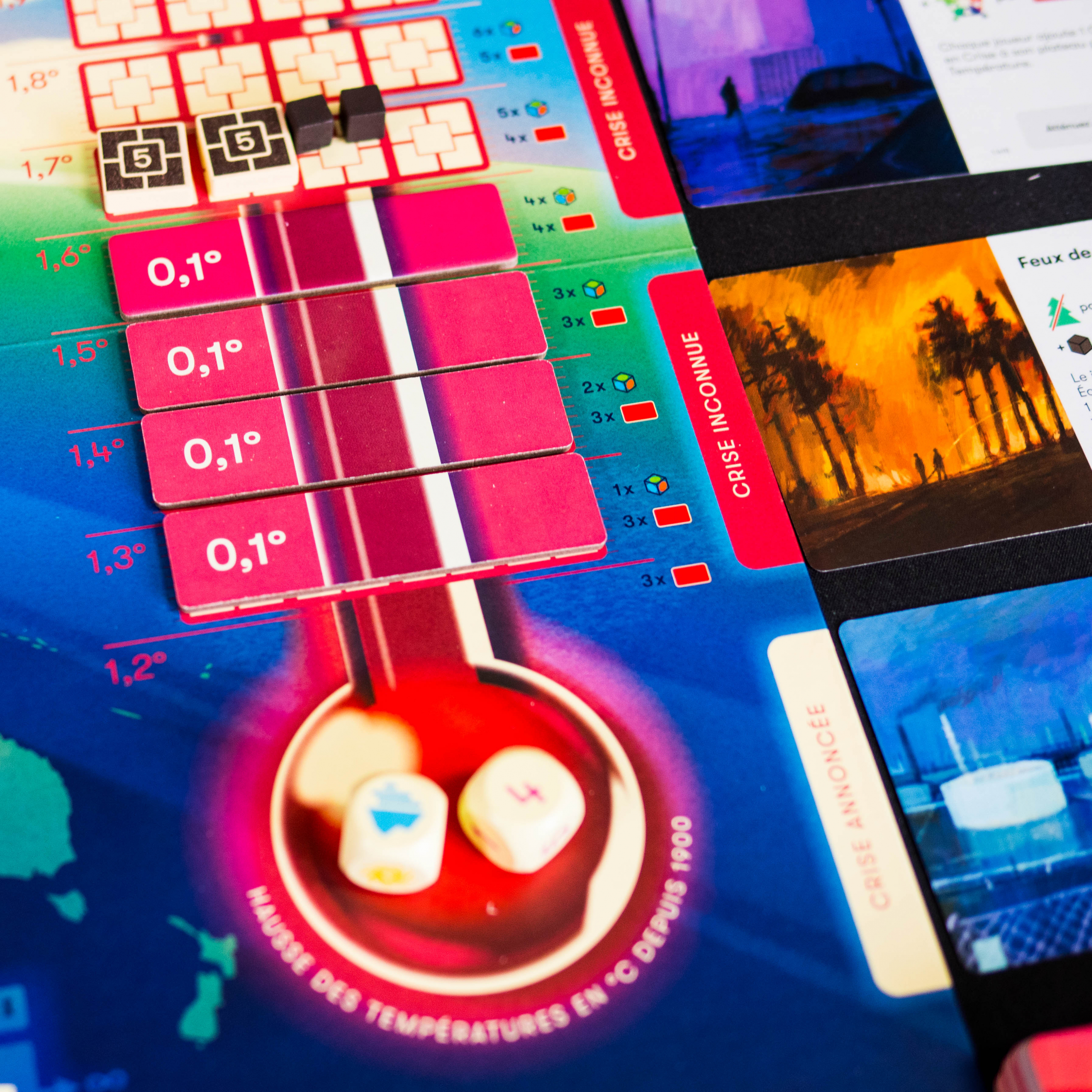 Les illustrations sont soignées, le matériel est de qualité, et la production écoresponsable sans plastique témoigne d’un réel engagement. Un plus non négligeable : l’aspect pédagogique du jeu, avec des cartes dotées de QR codes menant à des explications détaillées sur les solutions climatiques représentées.