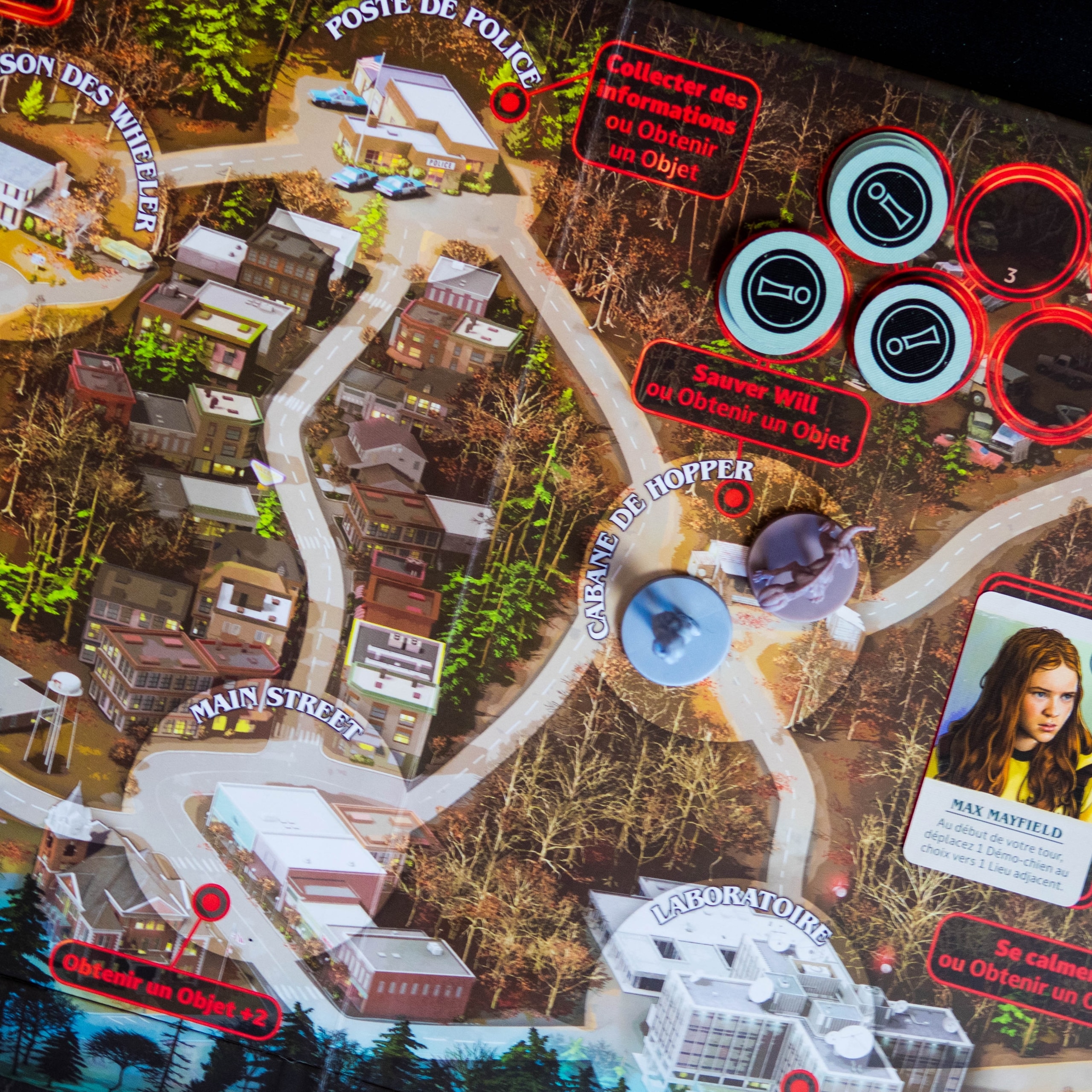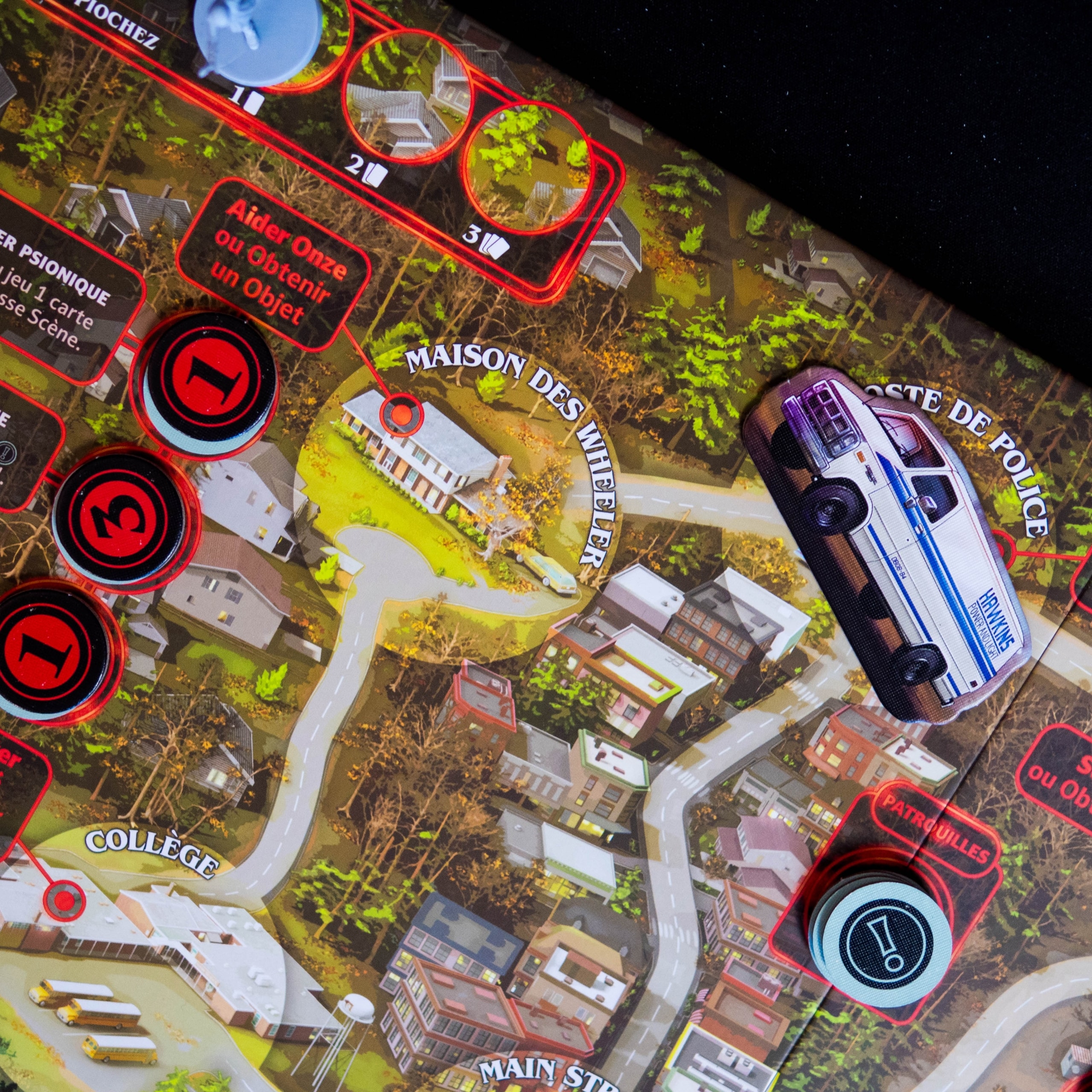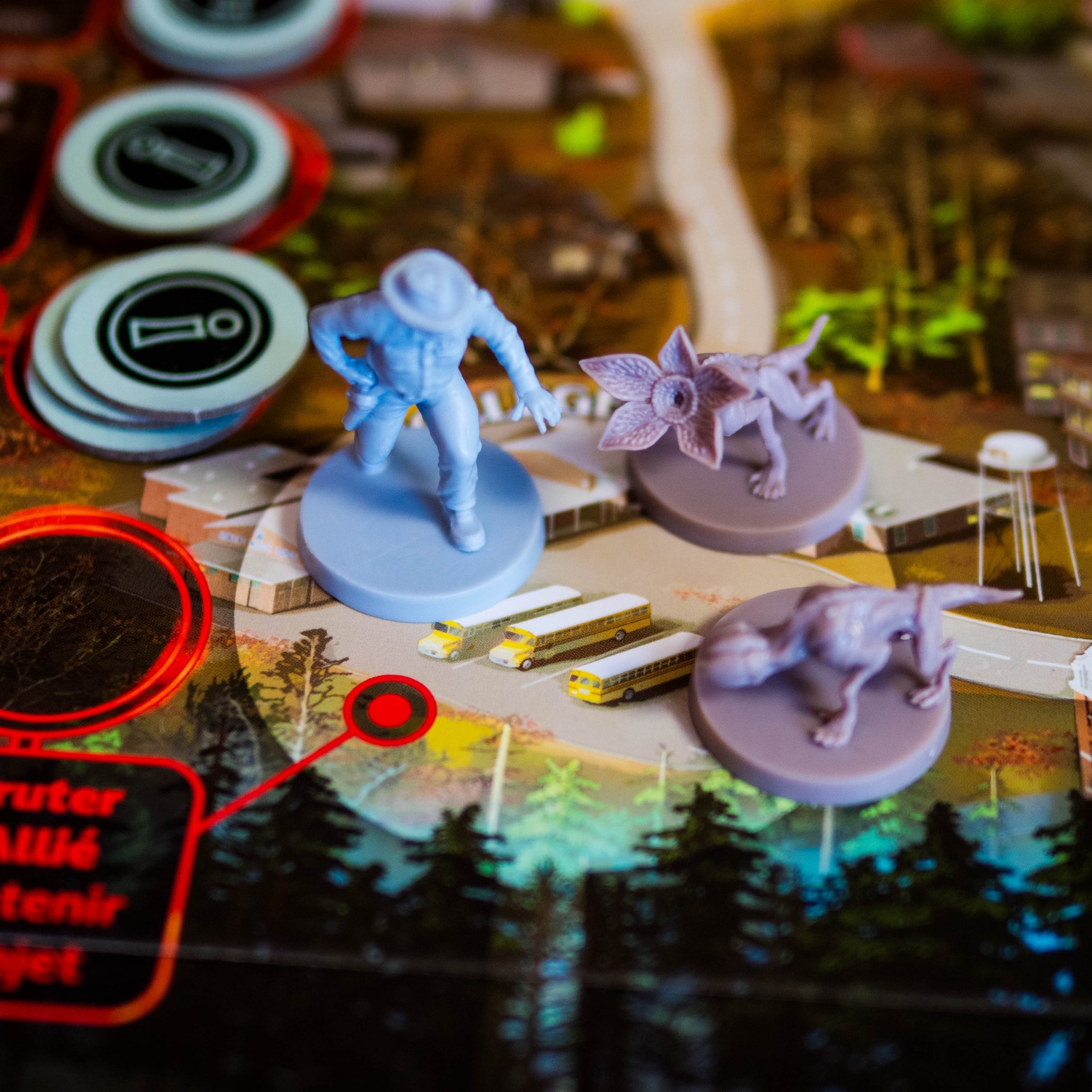 Stranger Things: Upside Down réussit avant tout à nous plonger dans l’ambiance de la série grâce à une immersion soignée, des personnages reconnaissables et des lieux emblématiques bien intégrés. Le jeu parvient à recréer l’atmosphère de Stranger Things en proposant deux expériences distinctes via son plateau réversible (Saison 1 et Saison 2), chacune avec ses propres ennemis (Démogorgon, Patrouilles ou Demodogs) et alliés emblématiques, même si, mécaniquement, on retrouve une structure assez similaire des deux côtés du plateau.