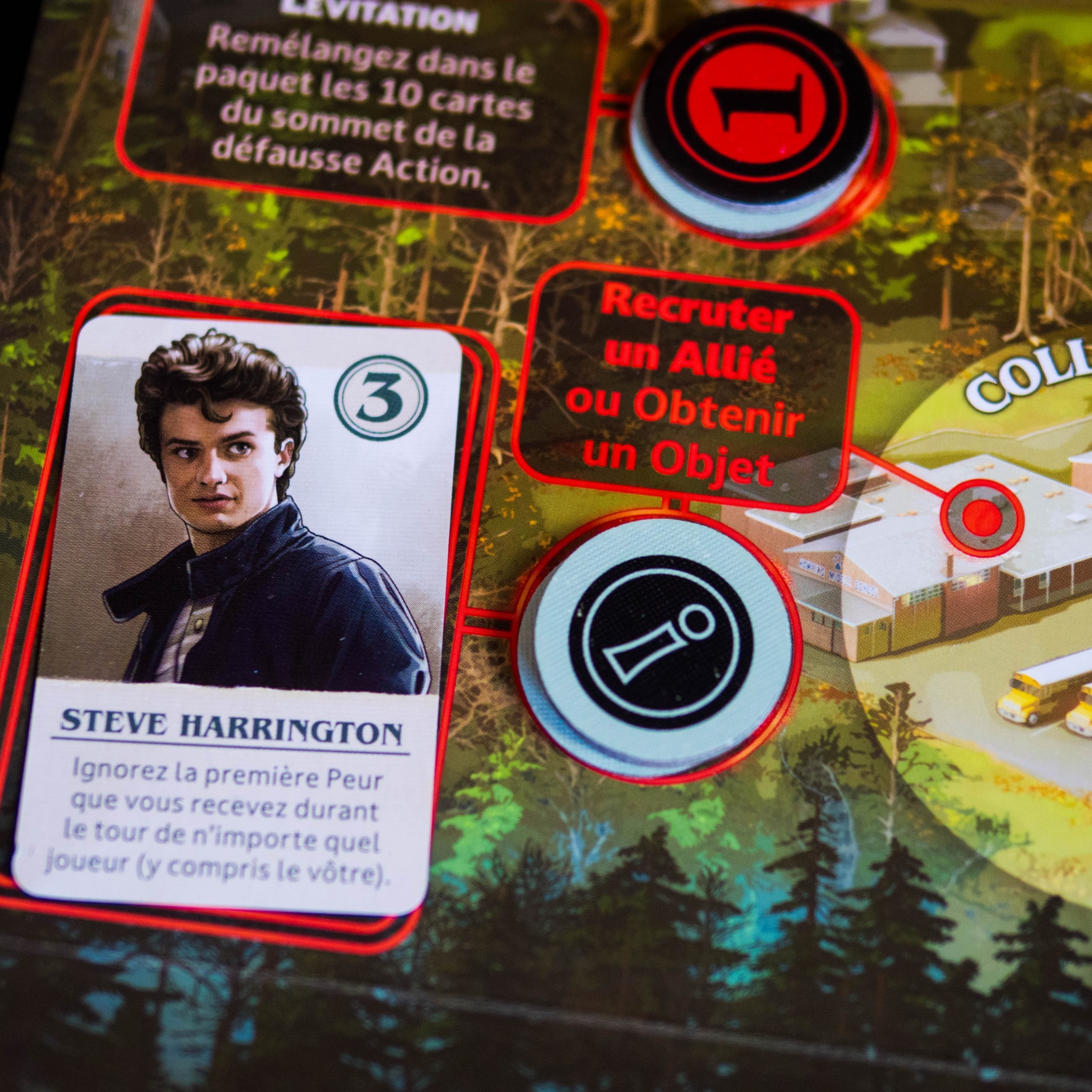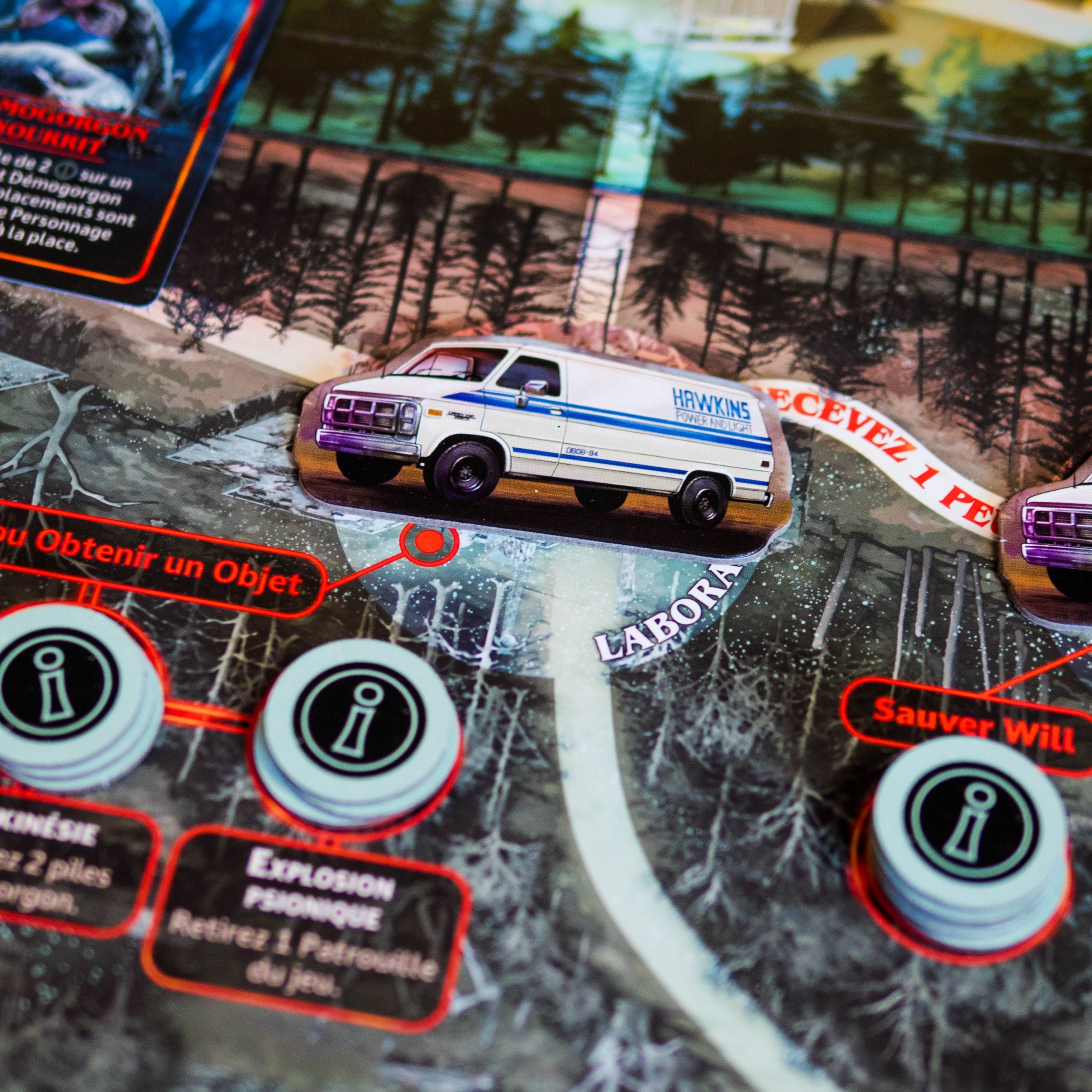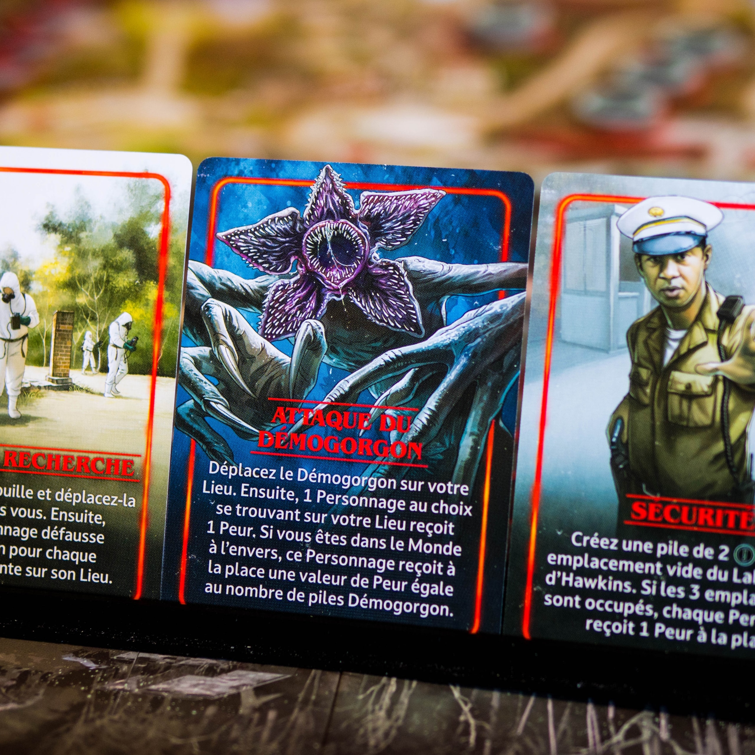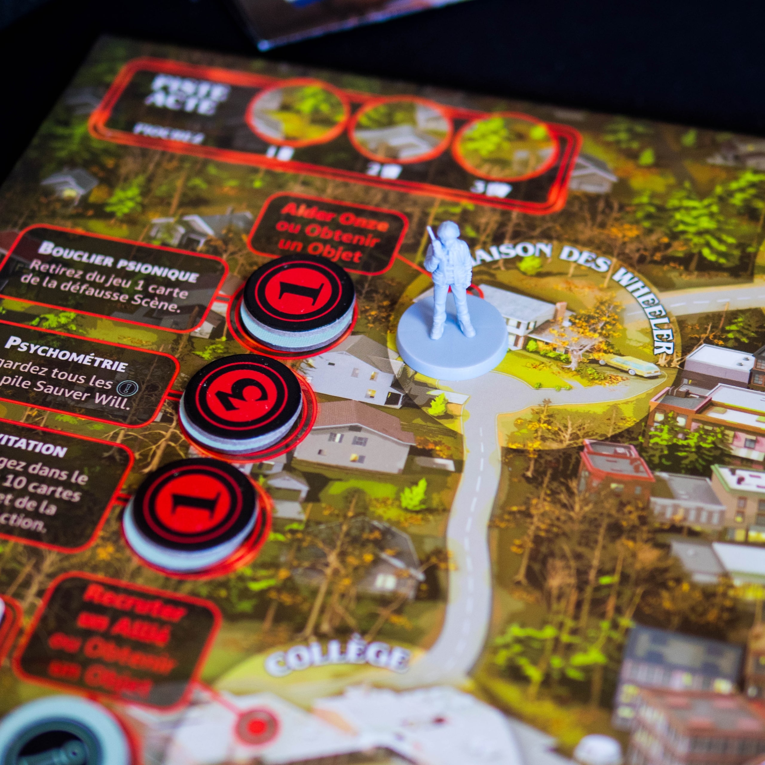 Stranger Things: Upside Down réussit avant tout à nous plonger dans l’ambiance de la série grâce à une immersion soignée, des personnages reconnaissables et des lieux emblématiques bien intégrés. Le jeu parvient à recréer l’atmosphère de Stranger Things en proposant deux expériences distinctes via son plateau réversible (Saison 1 et Saison 2), chacune avec ses propres ennemis (Démogorgon, Patrouilles ou Demodogs) et alliés emblématiques, même si, mécaniquement, on retrouve une structure assez similaire des deux côtés du plateau.